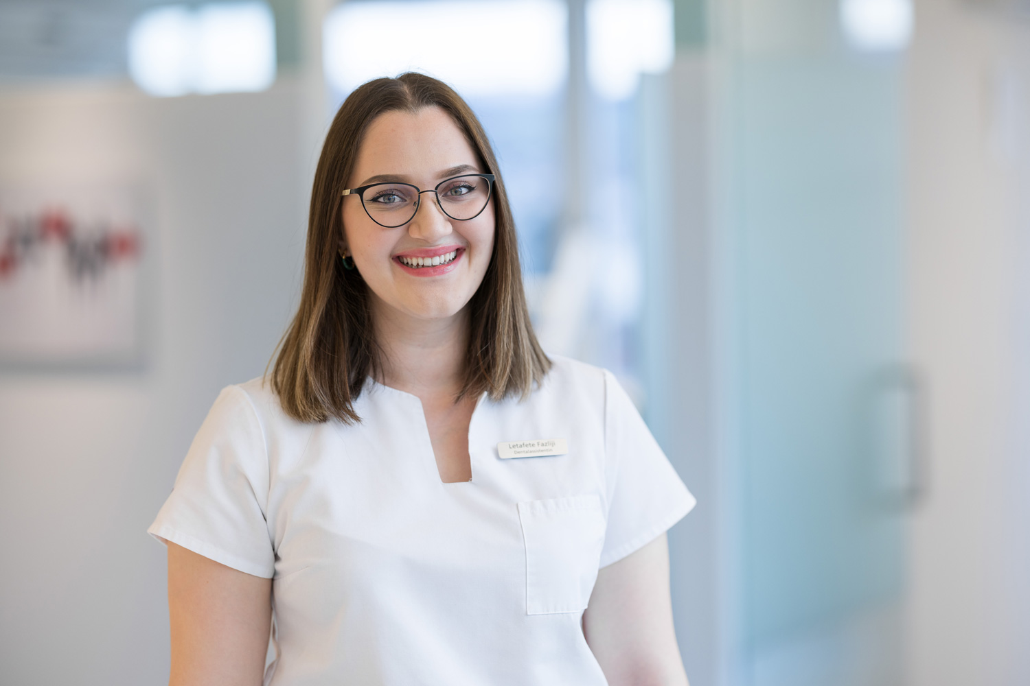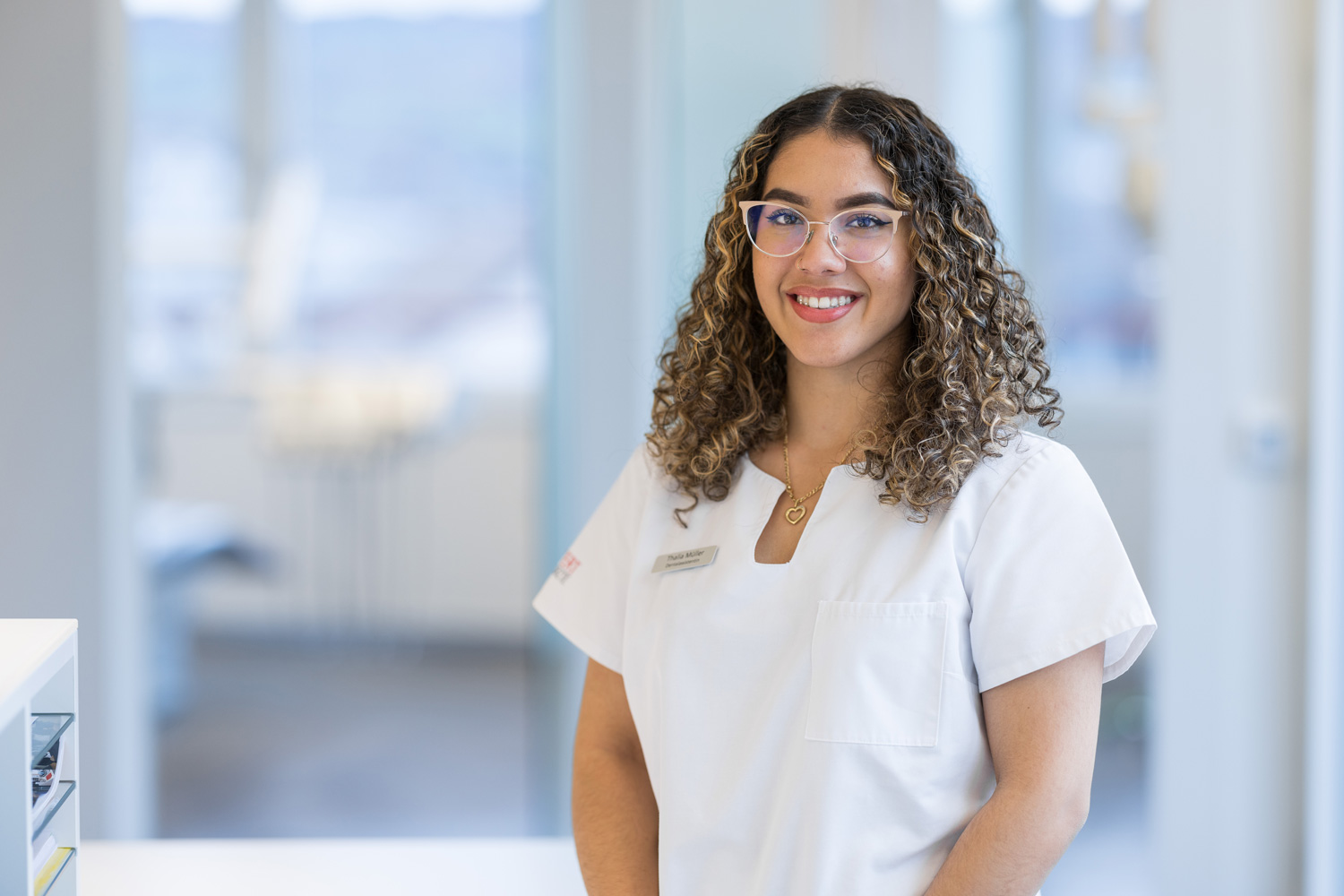 Die Vielfältigkeit meiner Arbeit bereitet mir täglich Freude. Ich betreue unsere Patienten gerne am Empfang und unterstütze die Lernenden während ihrer Ausbildungszeit. Es freut mich sehr, ein Teil dieser Praxis sein zu dürfen.